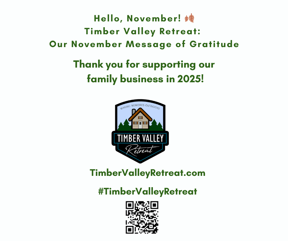 ๐Ÿ A Heartfelt October Thank You from Timber Valley Retreat!